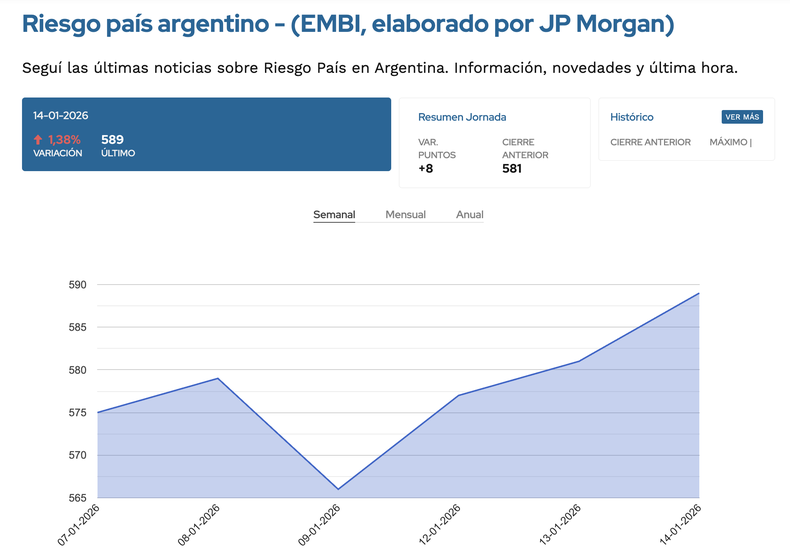 Aunque se haga difícil separar los eventos internacionales de los locales –el último, una inflación que parece haber interrumpido su reducción y que, de hecho, sube desde hace siete meses– hay que señalar que el riesgo argentino volvió a empinarse ayer, a tocar un máximo de un mes y a acercarse a los 600 puntos básicos.