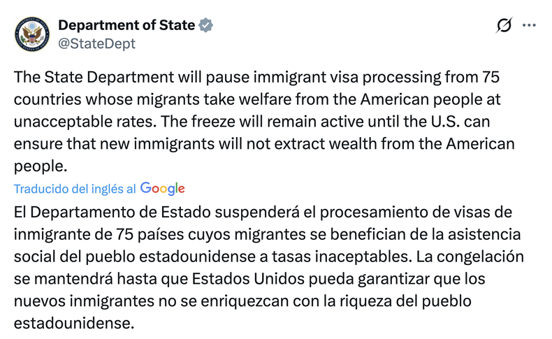 El jefe de la Casa Blanca es un hombre en guerra con el mundo. ¿Cómo entender, si no, la cancelación por tiempo indeterminado de los pedidos de visa de inmigrante desde 75 países, entre ellos Brasil, Colombia y Uruguay? Según el Departamento de Estado, ello busca impedir que esas personas «se beneficien de la asistencia social que paga el pueblo estadounidense», pero el sesgo ideológico y sancionatorio contra gobiernos de izquierda, al menos en la región, parece claro.