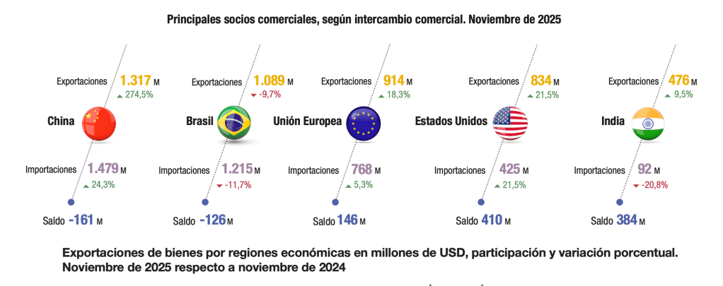 Argentina, mientras, acepta condicionamientos, deja en el aire proyectos de inversión importantes de China, no cancela el swap de monedas sólo porque no puede y no deja de comprarle a ese país. De hecho, si en 2024 Brasil había sido el principal origen de las importaciones realizadas por nuestro país, el año pasado, el de la guerra comercial, China recuperó el primer lugar.