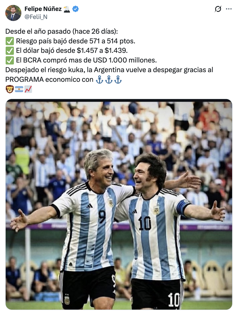 El detalle es que su ministro de Economía es Toto Caputo, el hombre que sobreendeudó a la Argentina en tiempos de Mauricio Macri.