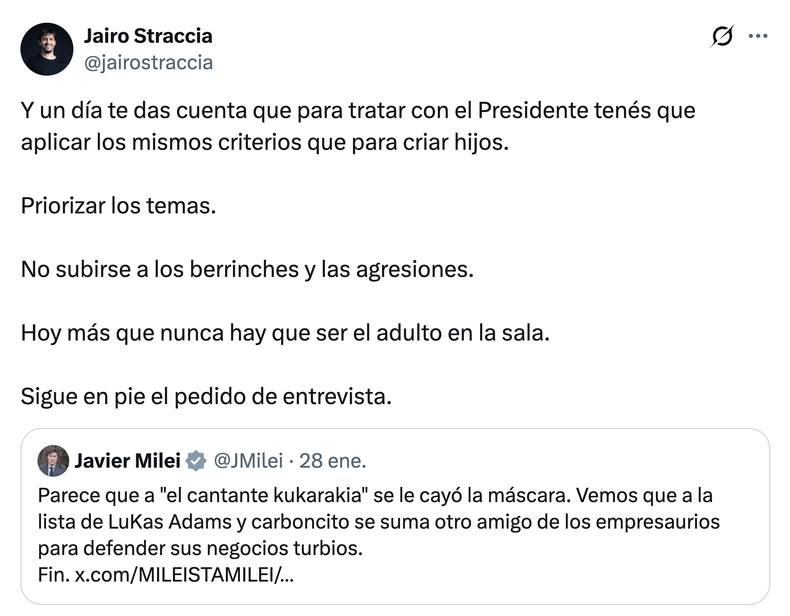 Así, bien a lo Trump, quien se ama cuando provoca, reapareció con toda la fuerza en el Presidente el lenguaje macartista, violento y pueril, tanto en las redes como en su reciente intervención en el Derecha Fest de Mar del Plata.