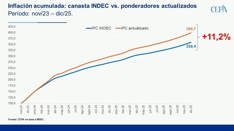 La diferencia entre la inflación oficial de la era Milei y la que habría surgido de un cálculo más realista supera los 38 puntos porcentuales y, de modo más claro, más de un 11% punta a punta. Este último número debe cargarse a la cuenta de los salarios, que el mandatario dice que se recuperaron pero que no lo hicieron, y de las jubilaciones, que empeoraron más que lo admitido hasta ahora.
