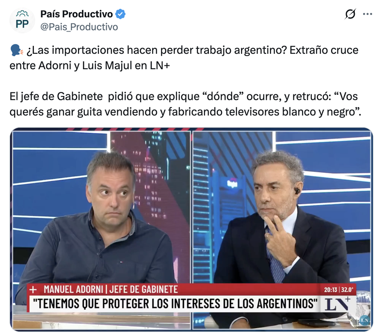 En la misma línea, Manuel Adorni convenció a Luis Majul de que importar los jeans que antes se producían en el país no destruye ningún puesto de trabajo. Ambos funcionarios se han revelado como verdaderos profesionales de la confusión.