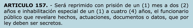 Más específicamente, el artículo 157 del Código Penal establece penas de prisión e inhabilitación para los funcionarios involucrados.