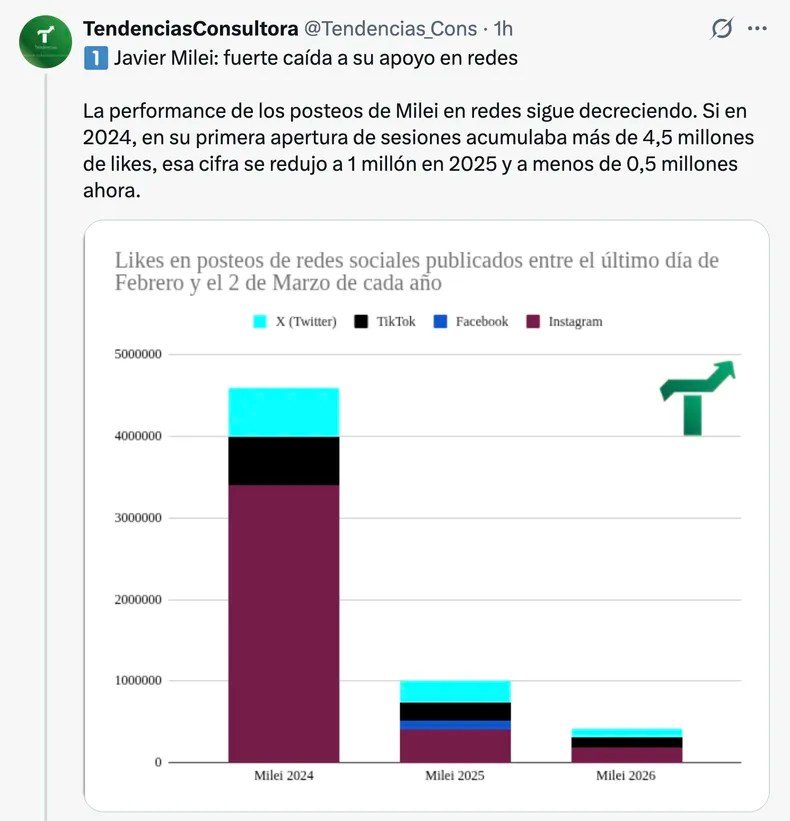 La hoguera de Irán podría apagarse en cuestión de días o pocas semanas y, en ese caso, el extremista de derecha tendría razón: lo que tenga que pasar con su programa económico y con los efectos sociales y políticos que produzca sólo surgiría, en tal caso, de dinámicas domésticas. Sin embargo, la eventual prolongación o la salida de control del conflicto, con una crisis caótica en el país atacado por Estados Unidos e Israel, podría poner en peligro el proyecto reeleccionista ya lanzado.