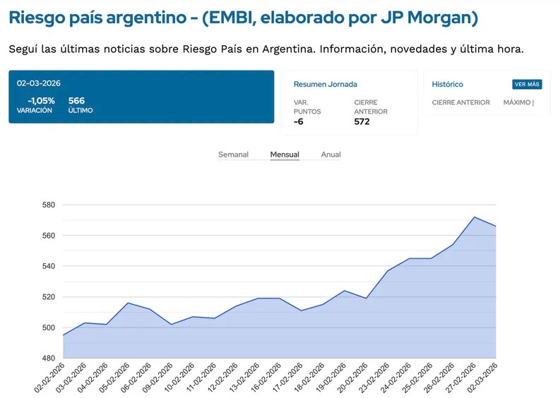 Sin embargo, los principales índices de la bolsa de Nueva York limitaron con el correr de la rueda sus pérdidas iniciales y terminaron en alza, algo que influyó también sobre los activos argentinos y permitió que el riesgo país se estacionara en 566 puntos básicos después de haberse acercado a los 590.