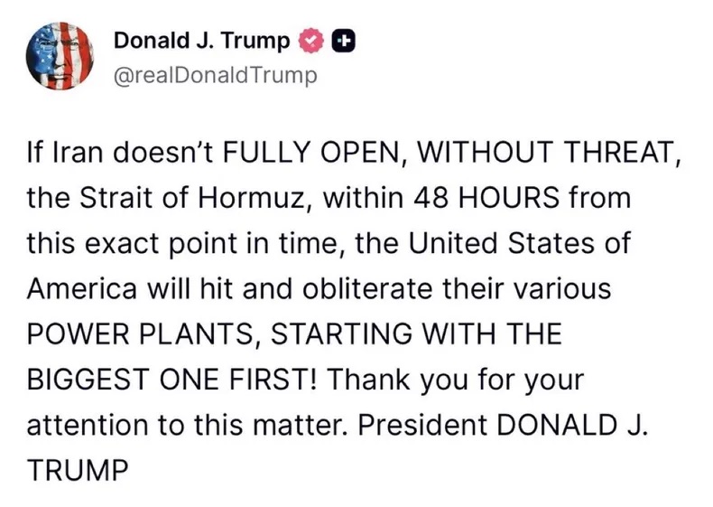 - Trump le dio el sábado a Teherán 48 horas para que abra esa vía, por la que normalmente transita el 20% del petróleo del mundo, bajo amenaza de atacar todas sus instalaciones eléctricas. La repuesta fue que eso dispararía represalias masivas contra infraestructura crítica en toda la región. De concretarse, esa escalada pordría llevar al crudo por encima de los 150 dólares. Y que sea lo que Dios quiera.