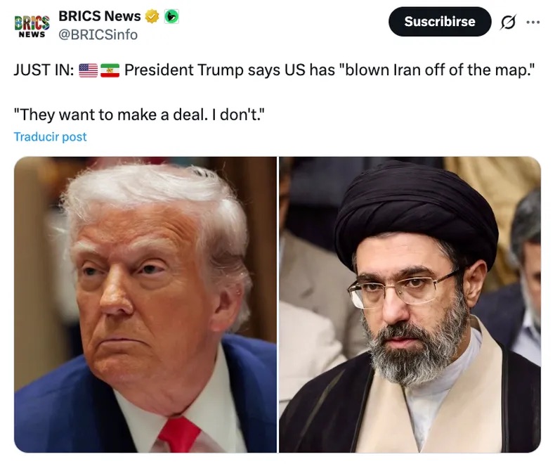 - El jefe de la Casa Blanca coquetea con la idea de una retirada, pero no termina de confirmar el paso y, con eso, deja la puerta abierta a un conflicto más largo. Dice que, junto a Israel, destruyó totalmente las Fuerzas Armadas iraníes, sus arsenales misilísticos e instalaciones de lanzamiento, así como su capacidad de enriquecer uranio. ¿Qué espera, entonces?