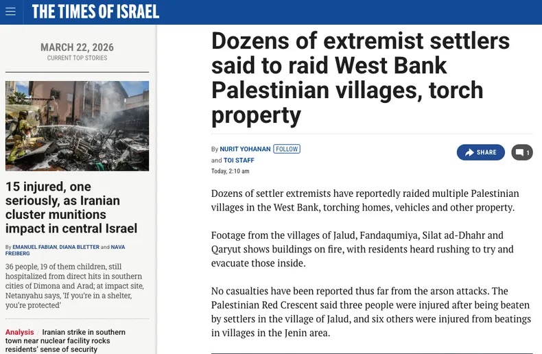 - Según reveló la prensa israelí, colonos desataron pogromos en pueblos de Cisjordania, donde atacaron a palestinos y quemaron viviendas, incluso con familias adentro. ¿Detenidos? No.