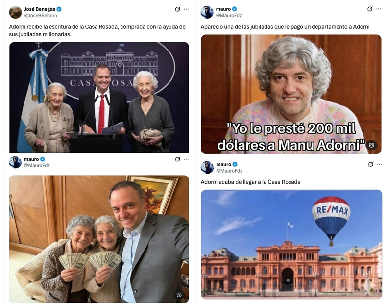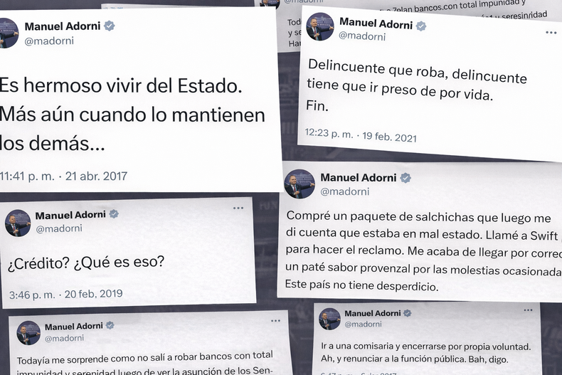 Muchos usuarios se divirtieron hurgando en viejos posteos de Adorni, ejercicio que expuso al jefe de Gabinete no sólo como un ejemplo impactante de movilidad social ascendente, sino también como un lenguaraz que extravió sus pontificaciones sobre la ética pública al doblar en la primera esquina.