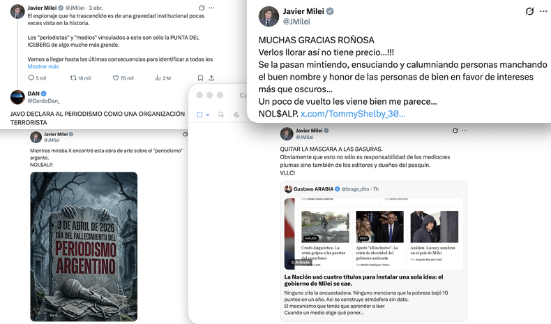 Los periodistas y los medios –al menos los que no lo asesoran en gestión de crisis y no aceptan interrumpir y editar entrevistas para no complicarlo penalmente– son de nuevo el objetivo. Volvió el mantra que llama a odiarlos de un modo «suficiente».