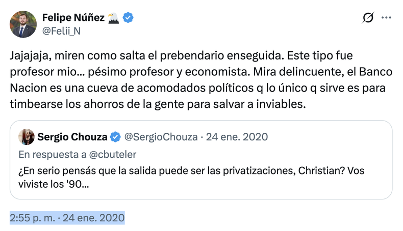 El problema del Gobierno es que si no se habla de Adorni ni de $LIBRA, debería hablarse de los créditos del Banco Nación a los funcionarios libertarios que aprendieron a querer al Estado, al revés de Adorni, que prefiere rodearse de jubiladas como acreedoras. Pero no, de eso tampoco se habla.