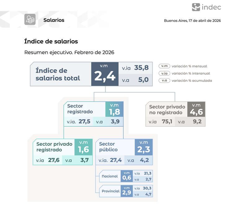 Aun aceptando esa distorsión flagrante, el Índice de salarios total aumentó 2,4% nominal en febrero, menos que la inflación de 2,9%. En tanto, los salarios de los trabajadores del sector formal –en blanco– «subieron» sólo 1,8% y quedaron todavía más rezagados.